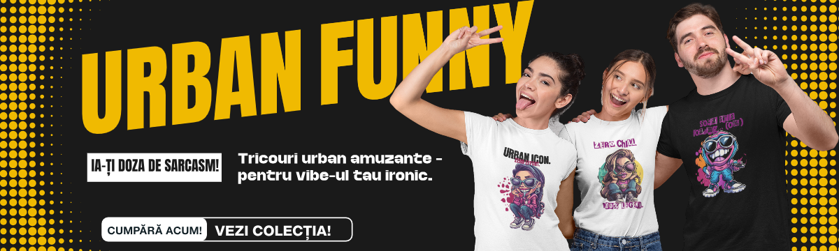 Descoperă colecția de tricouri Urban Funny pentru femei și bărbați – designuri cu mesaje haioase, vibe ironic și printuri originale. Tricouri din bumbac premium, croieli unisex, regular fit sau oversized. Poartă sarcasm, poartă urban! Comandă online, livrare rapidă!